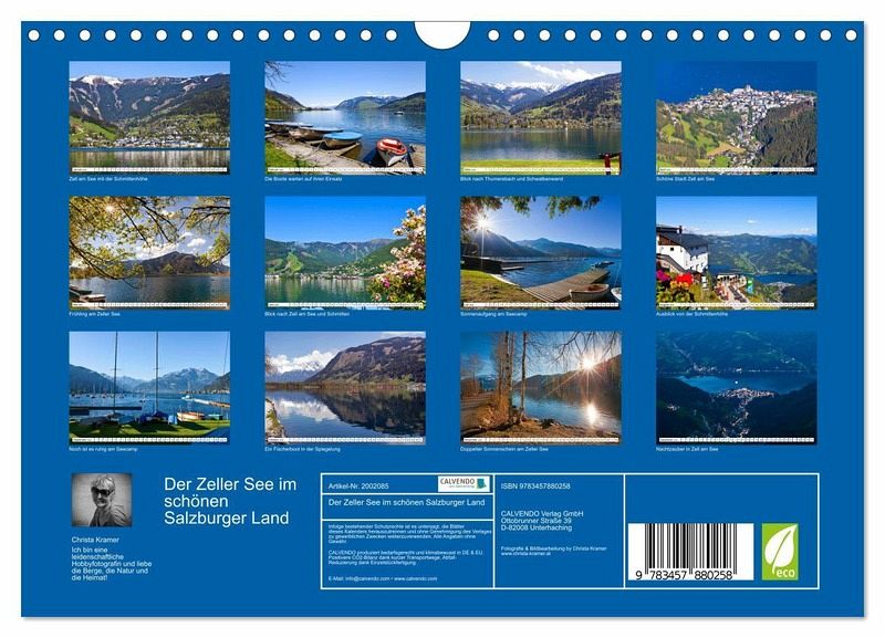 QUALITÄT - Hochwertiger Fotokalender mit 12 wunderschönen Motiven auf lichtbeständigem Bilderdruckpapier, robuste Spiralbindung mit Aufhängebügel.NACHHALTIG - deutliche Abfallreduzierung durch bedarfsgerechte Einzelstückfertigung, umweltfreundliches FSC-zertifiziertes Papier, Produktion in Deutschland, klimabewusste Logistik.PERFEKTES GESCHENK - Kalender für Freunde und Familie, für Kinder und Erwachsene, jung und alt, zu Weihnachten, Geburtstag oder zwischendurch.VIELFALT - Bildkalender in verschiedenen Formaten, z.B. DIN A5, DIN A4, DIN A3 sowie DIN A2. Ob Naturmotiv, Gemälde oder Fotos, ideal für ein persönliches Wohlfühlambiente.Impressionen vom Zeller See von Autor(in): Christa Kramer