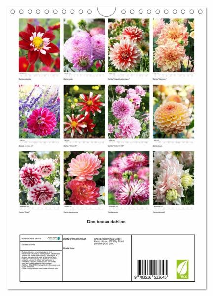 Ce calendrier rafraîchissant et lumineux vous réjouit avec 12 photos enchanteresses de différentes variétés de dahlias. Un vrai régal pour les yeux, pas seulement pour les passionnés de dahlias.