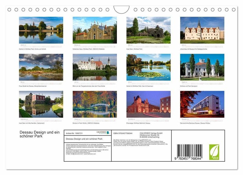 QUALITÄT - Hochwertiger Fotokalender mit 12 wunderschönen Motiven auf lichtbeständigem Bilderdruckpapier, robuste Spiralbindung mit Aufhängebügel.NACHHALTIG - deutliche Abfallreduzierung durch bedarfsgerechte Einzelstückfertigung, umweltfreundliches FSC-zertifiziertes Papier, Produktion in Deutschland, klimabewusste Logistik.PERFEKTES GESCHENK - Kalender für Freunde und Familie, für Kinder und Erwachsene, jung und alt, zu Weihnachten, Geburtstag oder zwischendurch.VIELFALT - Bildkalender in verschiedenen Formaten, z.B. DIN A5, DIN A4, DIN A3 sowie DIN A2. Ob Naturmotiv, Gemälde oder Fotos, ideal für ein persönliches Wohlfühlambiente.Weltkulturerbestätte durch das Bauhaus und einen besonderen Park von Autor(in): CALVENDO Verlag
