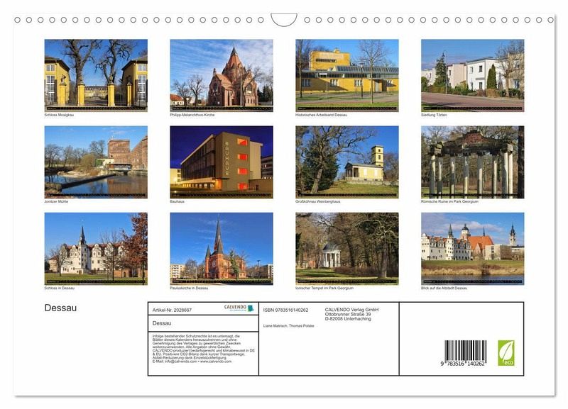 QUALITÄT - Hochwertiger Fotokalender mit 12 wunderschönen Motiven auf lichtbeständigem Bilderdruckpapier, robuste Spiralbindung mit Aufhängebügel.NACHHALTIG - deutliche Abfallreduzierung durch bedarfsgerechte Einzelstückfertigung, umweltfreundliches FSC-zertifiziertes Papier, Produktion in Deutschland, klimabewusste Logistik.PERFEKTES GESCHENK - Kalender für Freunde und Familie, für Kinder und Erwachsene, jung und alt, zu Weihnachten, Geburtstag oder zwischendurch.VIELFALT - Bildkalender in verschiedenen Formaten, z.B. DIN A5, DIN A4, DIN A3 sowie DIN A2. Ob Naturmotiv, Gemälde oder Fotos, ideal für ein persönliches Wohlfühlambiente.Dessau mit seinen Parks und der Bauhaus-Architektur von Autor(in): Thomas Polske