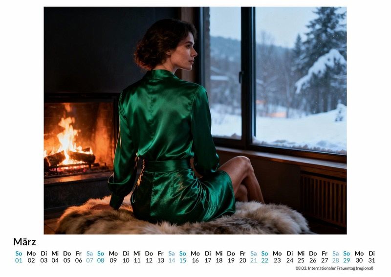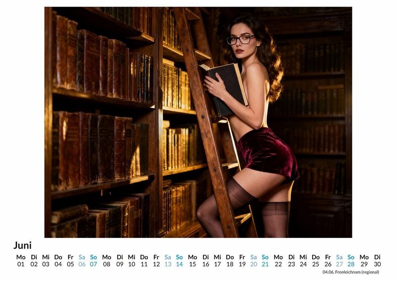 Ein Hauch von Seide auf der Haut, das filigrane Spiel von Spitze auf einer makellosen Silhouette. Der Kalender "Dessous" ist eine Hommage an die Kunst der Verführung, eingefangen in zwölf faszinierenden Momenten. Er zelebriert die Schönheit des Körpers in Verbindung mit luxuriösen Stoffen und schafft eine Welt voller Anmut und subtiler Provokation. Dieser Kalender ist eine ausgezeichnete Wahl für: Liebhaber von Ästhetik und sinnlicher Fotografie, die das Besondere schätzen. Suchende nach einem stilvollen Geschenk mit einer Note von Extravaganz. Sammler von Kalendern, die sich durch eine kühne und zugleich elegante Bildsprache vom Gewöhnlichen abheben. Jeder Monat enthüllt eine neue Facette der Weiblichkeit, präsentiert in erlesener Wäsche aus Spitze und Seide. Die Kompositionen aus Licht, Schatten und feinsten Stoffen schaffen eine Atmosphäre von Eleganz und Begehren. Die dargestellten Szenen sind mal geheimnisvoll, mal direkt, aber stets geschmackvoll und auf die Ästhetik des Moments fokussiert. Jedes Motiv ist das Ergebnis komplexer Berechnungen und kreativer Algorithmen, die eine Welt visueller Perfektion erschaffen, in der jede Kurve und jedes Detail zur Geltung kommt. Was dieser Kalender bietet: Zwölf einzigartige Monatsmotive voller Anmut und Verlockung. Ein stilvoller Wandschmuck, der das ganze Jahr über Blicke auf sich zieht. Ein praktisches Kalendarium, das den Fokus auf die Bildwelten legt. Der Kalender "Dessous" ist mehr als nur ein Zeitmesser für das kommende Jahr. Er ist eine tägliche Erinnerung an die Kraft der Schönheit und eine Einladung, die Eleganz des Augenblicks zu zelebrieren. Eine Sammlung, die inspiriert und fesselt. Ein Blick auf die Monatsansichten offenbart die visuelle Kraft dieser einzigartigen Kompositionen.