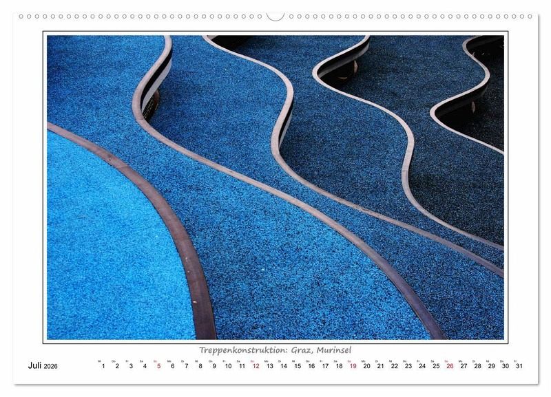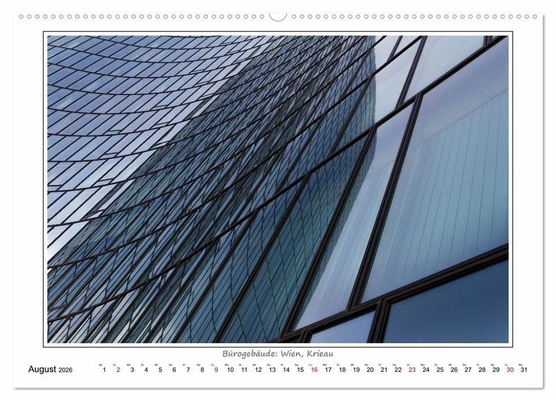 Die Kalenderbilder zeigen Details zeitgenössischer Baukunst. Ein Aspekt dabei ist der Rhythmus, die Wiederkehr sich gleichender Formen. Lebendig wird dieser Rhythmus erst durch die Variation: in der Linienführung, in der Krümmung, in der Größe bestimmter Elemente und in anderen gestalterischen Details, welche Ähnlichkeit zulassen, aber keine absolute Gleichheit in den Wiederholungen.