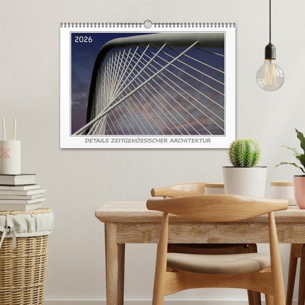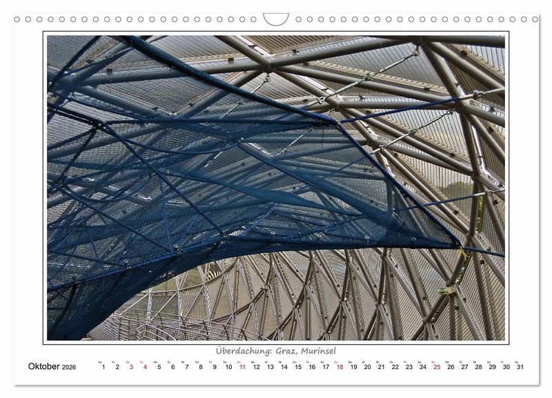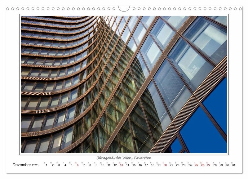 Die Kalenderbilder zeigen Details zeitgenössischer Baukunst. Ein Aspekt dabei ist der Rhythmus, die Wiederkehr sich gleichender Formen. Lebendig wird dieser Rhythmus erst durch die Variation: in der Linienführung, in der Krümmung, in der Größe bestimmter Elemente und in anderen gestalterischen Details, welche Ähnlichkeit zulassen, aber keine absolute Gleichheit in den Wiederholungen.