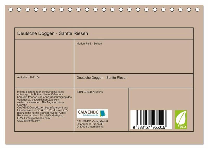 QUALITÄT - Hochwertiger Fotokalender mit 12 wunderschönen Motiven auf lichtbeständigem Bilderdruckpapier, robuste Spiralbindung.NACHHALTIG - deutliche Abfallreduzierung durch bedarfsgerechte Einzelstückfertigung, umweltfreundliches FSC-zertifiziertes Papier, Produktion in Deutschland, klimabewusste Logistik.PERFEKTES GESCHENK - Kalender für Freunde und Familie, für Kinder und Erwachsene, jung und alt, zu Weihnachten, Geburtstag oder zwischendurch.VIELFALT - Bildkalender in verschiedenen Formaten, z.B. DIN A5, DIN A4, DIN A3 sowie DIN A2. Ob Naturmotiv, Gemälde oder Fotos, ideal für ein persönliches Wohlfühlambiente.Die Deutsche Dogge ist ein liebevoller Riese, der viel Bewegung und eine konsequente Erziehung von Welpe an braucht. Die Herzen von Hundefreunden erobert sie mit ihrem freundlichen Wesen im Sturm. von Autor(in): Marion Reiß - Seibert
