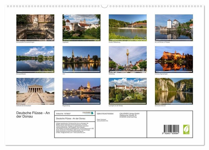 Dieser farbenfrohe Kalender vom Reisefotografen Peter Schickert zeigt warum die Donau bei Besuchern aus aller Welt so überaus beliebt ist: historische Städt wie Ulm oder Regensburg, faszinierende Bauwerke und natürliche die seheneswerten Flusslandschaften rund um den deutschen Teil des zweitgrößten und zweitlängsten Fluss in Europa.