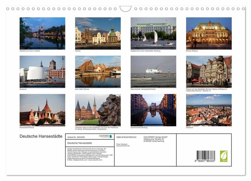 QUALITÄT - Hochwertiger Fotokalender mit 12 wunderschönen Motiven auf lichtbeständigem Bilderdruckpapier, robuste Spiralbindung mit Aufhängebügel.NACHHALTIG - deutliche Abfallreduzierung durch bedarfsgerechte Einzelstückfertigung, umweltfreundliches FSC-zertifiziertes Papier, Produktion in Deutschland, klimabewusste Logistik.PERFEKTES GESCHENK - Kalender für Freunde und Familie, für Kinder und Erwachsene, jung und alt, zu Weihnachten, Geburtstag oder zwischendurch.VIELFALT - Bildkalender in verschiedenen Formaten, z.B. DIN A5, DIN A4, DIN A3 sowie DIN A2. Ob Naturmotiv, Gemälde oder Fotos, ideal für ein persönliches Wohlfühlambiente.Die großen deutschen Hansestädte von Bremen bis Stralsund von Autor(in): Peter Schickert