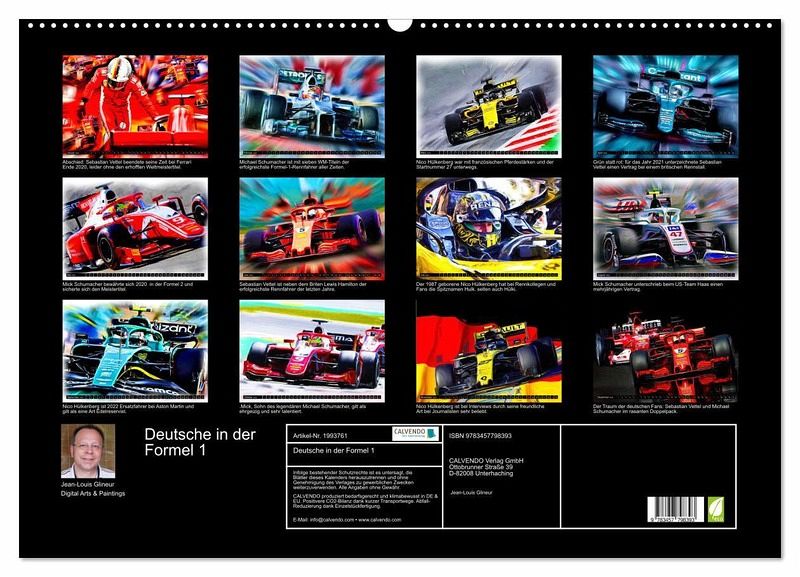 In der aktuellen Formel 1 sind mit Nico Hülkenberg und Sebastian Vettel nur zwei Deutsche unterwegs, aber Mick Schumacher - Sohn des legendären Michael "Schumi" Schumacher, wartet bereits auf seine Chance. Der Künstler Jean-Louis Glineur hat ihnen eine Bilderserie gewidmet. Unterstützt wird er vom offiziellen Formel-1-Fotografen Jerry Andre mit Bildvorlagen.