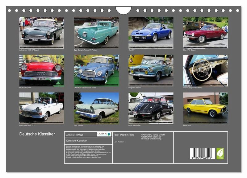 QUALITÄT - Hochwertiger Fotokalender mit 12 wunderschönen Motiven auf lichtbeständigem Bilderdruckpapier, robuste Spiralbindung mit Aufhängebügel.NACHHALTIG - deutliche Abfallreduzierung durch bedarfsgerechte Einzelstückfertigung, umweltfreundliches FSC-zertifiziertes Papier, Produktion in Deutschland, klimabewusste Logistik.PERFEKTES GESCHENK - Kalender für Freunde und Familie, für Kinder und Erwachsene, jung und alt, zu Weihnachten, Geburtstag oder zwischendurch.VIELFALT - Bildkalender in verschiedenen Formaten, z.B. DIN A5, DIN A4, DIN A3 sowie DIN A2. Ob Naturmotiv, Gemälde oder Fotos, ideal für ein persönliches Wohlfühlambiente.Deutschland hat zweifellos hervorragende Autos produziert. Hier eine Auswahl! von Autor(in): Condorito1953