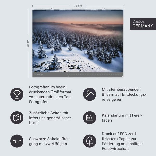 - Natur pur: die schönsten Aufnahmen aus den Nationalparks in Deutschland in einem Wandkalender XXL- Von Küste bis Bergpanorama: Gehen Sie auf Entdeckungsreise - Deutschland-Kalender für Naturliebhaber- Wohin soll die Reise gehen? Vom Wattenmeer bis zum Alpengipfel, vom alten Buchenwald bis zur Heide-Landschaft: Deutschlands Nationalparks sind vielfältig - Dünen und Strände, Wiesen und Wälder: Bewundern Sie Monat für Monat neue Landschaften - Kalender Großformat: 78 x 58 cm- Die Kalender Edition Alexander von Humboldt aus dem Hause Heye im Athesia Kalenderverlag: Naturaufnahmen in höchster Qualität