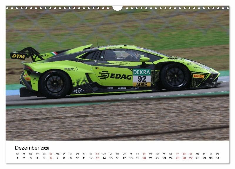 Kalender mit Fotos aus der DTM. Neben den traditionell in der DTM vertretenen Herstellern Audi, BMW und Mercedes nun auch mit GT3 Fahrzeugen von Porsche und Lamborghini.