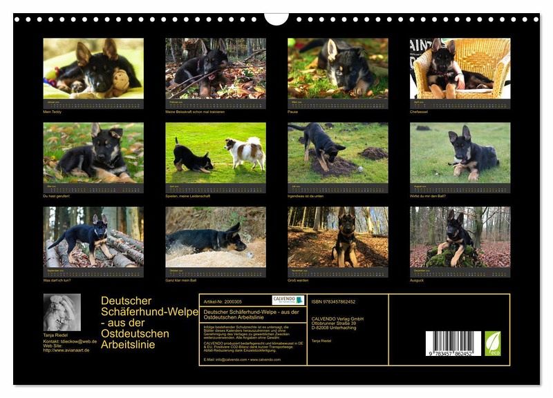 Der Deutsche Schäferhund ist ein Allrounder unter den Hunden, ob als Familien- , Schutz- oder Arbeitshund, für alle Bereiche ist er zuverlässig, treu sowie beständig einzusetzen. Dieser Kalender illustriert die ersten aufregenden Lebenswochen eines jungen Welpen. Für Fans dieser Hunderasse ein wunderbarer Jahreskalender, der Sie rund um das neue Jahr begleitet.