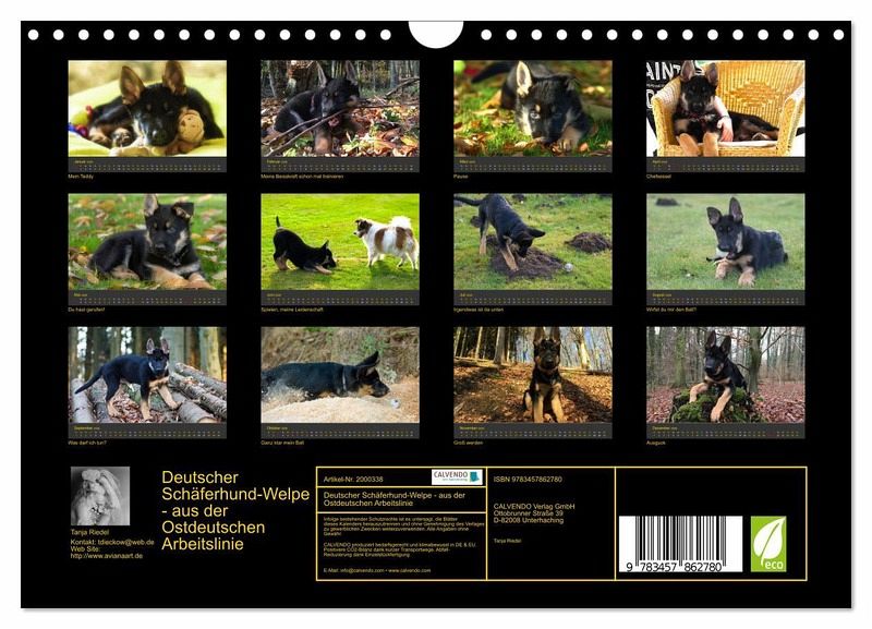 Der Deutsche Schäferhund ist ein Allrounder unter den Hunden, ob als Familien- , Schutz- oder Arbeitshund, für alle Bereiche ist er zuverlässig, treu sowie beständig einzusetzen. Dieser Kalender illustriert die ersten aufregenden Lebenswochen eines jungen Welpen. Für Fans dieser Hunderasse ein wunderbarer Jahreskalender, der Sie rund um das neue Jahr begleitet.