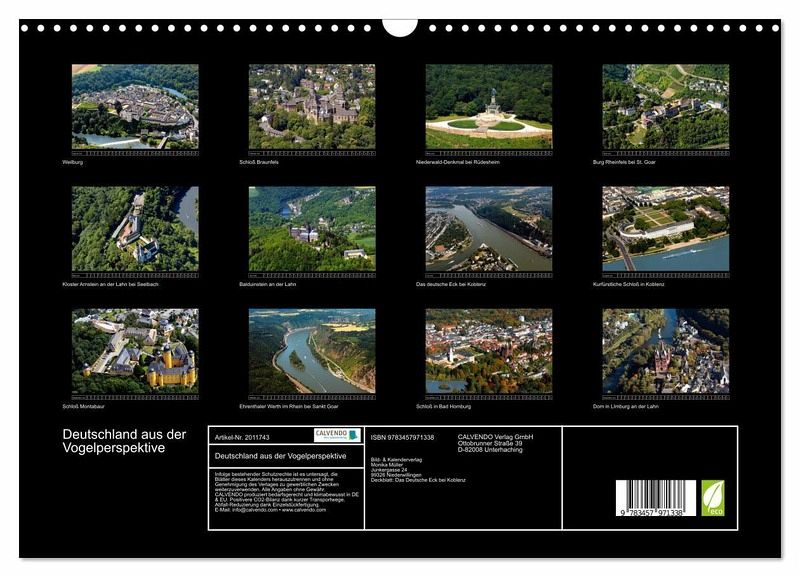 Erleben Sie in 13 wunderschönen Luftbildaufnahmen die Landschaft, Burgen, Schösser und Klöster in der weiteren Umgebung um das Deutsche Eck. Der Kalender lädt den Betrachter dazu ein, dieses reizvolle Gebiet persönlich zu erkunden.