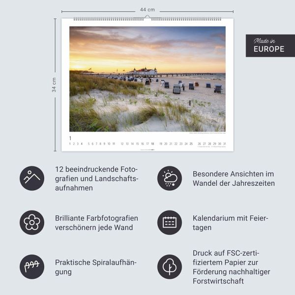 - Lassen Sie sich verzaubern von den schönsten Seiten Ihrer Heimat: Kalender 2026 mit 12 atemberaubenden Bildern quer durch alle Bundesländer- In Deutschland neu verlieben: bezaubernde Städte und malerische Landschaften in einem Wandkalender 2026 im Format 44 x 34 cm- Toll in Szene gesetzt: Fotokalender mit deutschen Sehenswürdigkeiten von Nord bis Süd, von Ost nach West- Von der See bis zu den Bergen: Deutschland-Kalender mit atmosphärischen Aufnahmen zum Träumen und Genießen- Das ideale Geschenk für Reise-Begeisterte: die Weingarten-Posterkalender aus dem Athesia Kalenderverlag