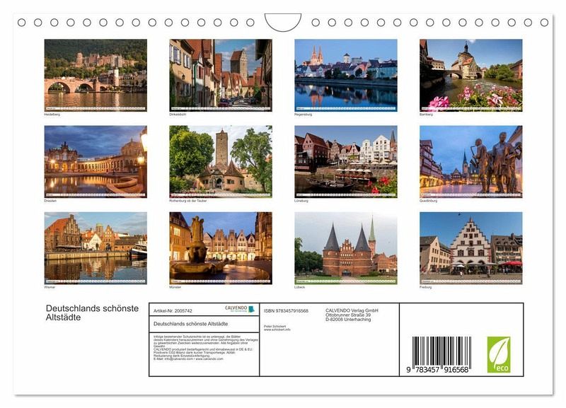 QUALITÄT - Hochwertiger Fotokalender mit 12 wunderschönen Motiven auf lichtbeständigem Bilderdruckpapier, robuste Spiralbindung mit Aufhängebügel.NACHHALTIG - deutliche Abfallreduzierung durch bedarfsgerechte Einzelstückfertigung, umweltfreundliches FSC-zertifiziertes Papier, Produktion in Deutschland, klimabewusste Logistik.PERFEKTES GESCHENK - Kalender für Freunde und Familie, für Kinder und Erwachsene, jung und alt, zu Weihnachten, Geburtstag oder zwischendurch.VIELFALT - Bildkalender in verschiedenen Formaten, z.B. DIN A5, DIN A4, DIN A3 sowie DIN A2. Ob Naturmotiv, Gemälde oder Fotos, ideal für ein persönliches Wohlfühlambiente.12 wunderbar erhaltene deutsche Altstädte. von Autor(in): Peter Schickert