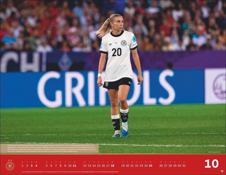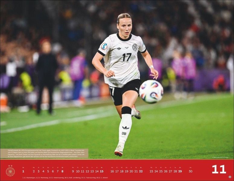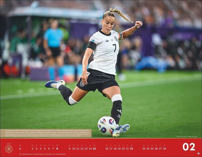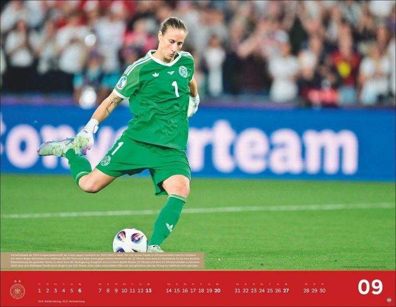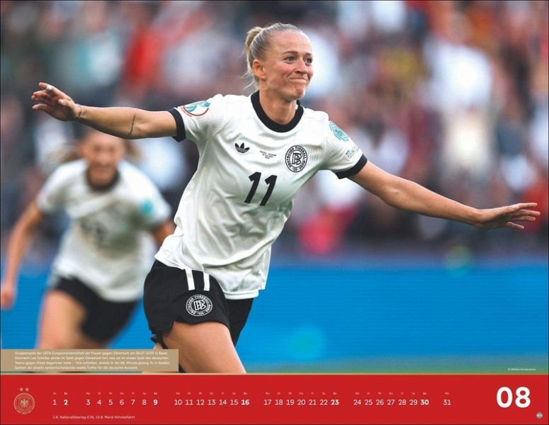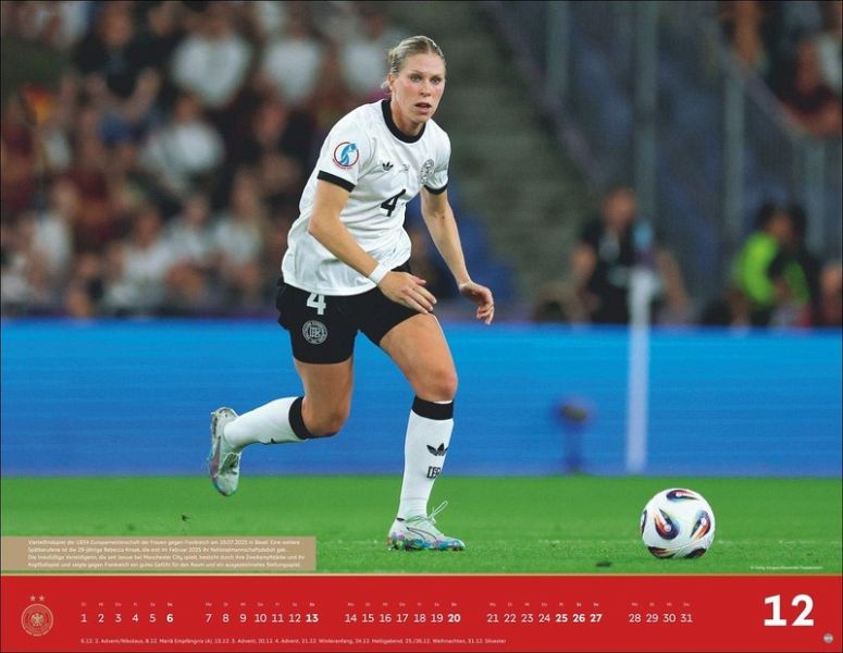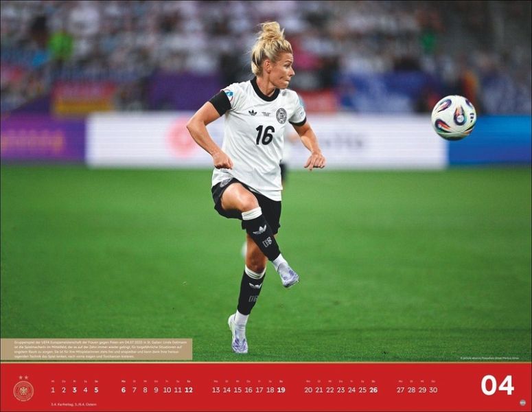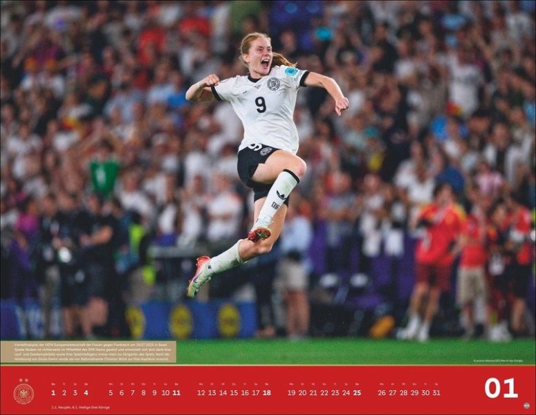 - Fußball ist weiblich! Der DFB-Kalender zeigt unsere Ballkünstlerinnen von ihrer besten Seite- Monat für Monat mit neuen Highlights und unvergesslichen Momenten aus den Spielen der deutschen Frauen-Nationalmannschaft während der EM- Immer ein Volltreffer! Dieser hochwertige Fotokalender ist das ideale Geschenk für Fußballfans und Sportbegeisterte- Die Damen-DFB-Elf als Blickfang über jeder Fernsehcouch: großer Wandkalender im Format 44 x 35 cm - Große Kalender-Auswahl für Sportfreunde und Fußball-Liebhaber: bei Heye im Athesia Kalenderverlag finden Sie garantiert das passende Exemplar!