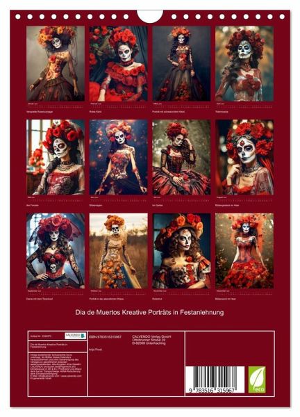 QUALITÄT - Hochwertiger Fotokalender mit 12 wunderschönen Motiven auf lichtbeständigem Bilderdruckpapier, robuste Spiralbindung mit Aufhängebügel.NACHHALTIG - deutliche Abfallreduzierung durch bedarfsgerechte Einzelstückfertigung, umweltfreundliches FSC-zertifiziertes Papier, Produktion in Deutschland, klimabewusste Logistik.PERFEKTES GESCHENK - Kalender für Freunde und Familie, für Kinder und Erwachsene, jung und alt, zu Weihnachten, Geburtstag oder zwischendurch.VIELFALT - Bildkalender in verschiedenen Formaten,z.B. DIN A5, DIN A4, DIN A3 sowie DIN A2. Ob Naturmotiv, Gemälde oder Fotos, ideal für ein persönliches Wohlfühlambiente.Frauen in fantasievollen Kleidern und verzierten Totenkopfmasken nach Art des Dia de Los Muertos von Autor(in): Anja Frost