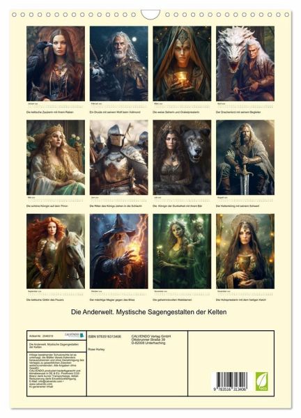 Die keltische Anderwelt ist eine Welt, die parallel zu unserer Welt existiert. Der Legende nach leben hinter den Nebelschleiern mystische Gestalten und Kreaturen. Die geheimnisvolle Anderwelt soll hinter magischen Toren in Wäldern, auf Hügeln und Bergen zu finden sein. Dieser Kalender wurde mit KI erstellt und bringt den Zauber von beliebten Sagen und Legenden in jedes Zuhause.