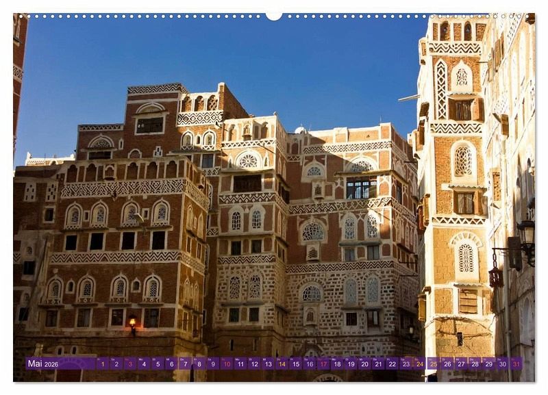 Jemen, auch benannt als »Land des Weihrauchs« oder »Arabia felix?« (glückliches? Arabien). Entdecken Sie jeden Monat beeindruckende Architekturtraditionen, von den Lehmbauten der Region Hadramaut bis hin zu den Kronendörfern und Terrassenlandschaften des Bergjemens. Die Baukunst des Jemen ist der Ausdruck einer faszinierenden, etwa 4000 Jahre alten Kultur, die sich in besonderer Art und Weise in die natürlichen Gegebenheiten einfügt.