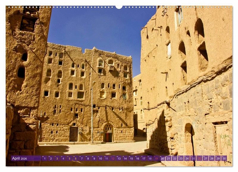 Jemen, auch benannt als »Land des Weihrauchs« oder »Arabia felix?« (glückliches? Arabien). Entdecken Sie jeden Monat beeindruckende Architekturtraditionen, von den Lehmbauten der Region Hadramaut bis hin zu den Kronendörfern und Terrassenlandschaften des Bergjemens. Die Baukunst des Jemen ist der Ausdruck einer faszinierenden, etwa 4000 Jahre alten Kultur, die sich in besonderer Art und Weise in die natürlichen Gegebenheiten einfügt.