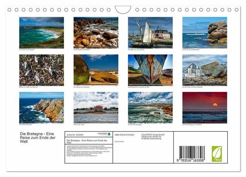 QUALITÄT - Hochwertiger Fotokalender mit 12 wunderschönen Motiven auf lichtbeständigem Bilderdruckpapier, robuste Spiralbindung mit Aufhängebügel.NACHHALTIG - deutliche Abfallreduzierung durch bedarfsgerechte Einzelstückfertigung, umweltfreundliches FSC-zertifiziertes Papier, Produktion in Deutschland, klimabewusste Logistik.PERFEKTES GESCHENK - Kalender für Freunde und Familie, für Kinder und Erwachsene, jung und alt, zu Weihnachten, Geburtstag oder zwischendurch.VIELFALT - Bildkalender in verschiedenen Formaten, z.B. DIN A5, DIN A4, DIN A3 sowie DIN A2. Ob Naturmotiv, Gemälde oder Fotos, ideal für ein persönliches Wohlfühlambiente.Fotokalender der einzigartigen bretonischen Küstenlandschaft von Autor(in): HP-Grafik