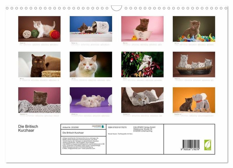 Die Britisch Kurzhaar Katze ist eine wundervolle Rasse. Diese kleinen und großen Teddybären auf 13 liebevoll zusammengestellten Kalenderseiten soll jedem Tierfreund das Jahr versüßen und Freude schenken.