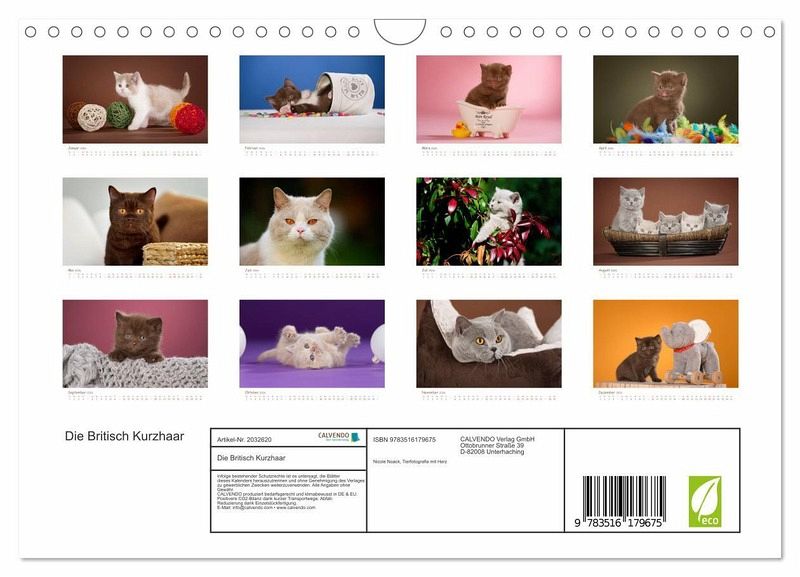 Die Britisch Kurzhaar Katze ist eine wundervolle Rasse. Diese kleinen und großen Teddybären auf 13 liebevoll zusammengestellten Kalenderseiten soll jedem Tierfreund das Jahr versüßen und Freude schenken.