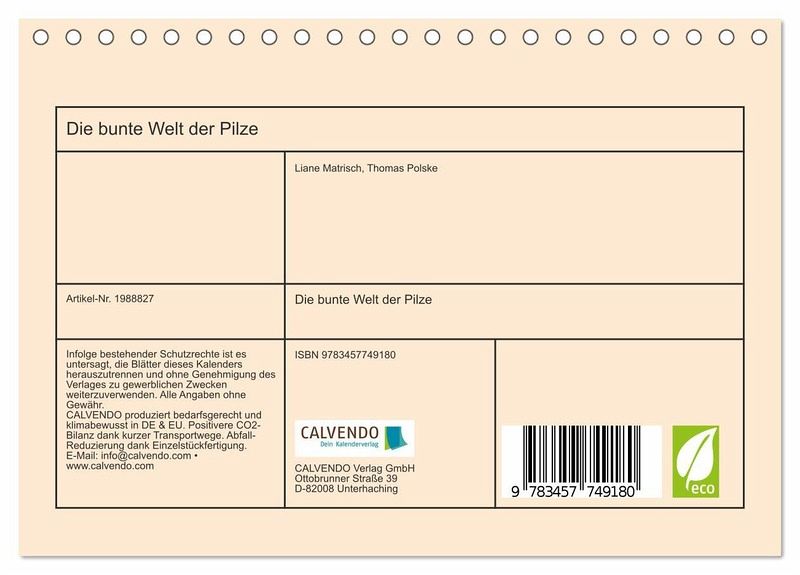 QUALITÄT - Hochwertiger Fotokalender mit 12 wunderschönen Motiven auf lichtbeständigem Bilderdruckpapier, robuste Spiralbindung.NACHHALTIG - deutliche Abfallreduzierung durch bedarfsgerechte Einzelstückfertigung, umweltfreundliches FSC-zertifiziertes Papier, Produktion in Deutschland, klimabewusste Logistik.PERFEKTES GESCHENK - Kalender für Freunde und Familie, für Kinder und Erwachsene, jung und alt, zu Weihnachten, Geburtstag oder zwischendurch.VIELFALT - Bildkalender in verschiedenen Formaten, z.B. DIN A5, DIN A4, DIN A3 sowie DIN A2. Ob Naturmotiv, Gemälde oder Fotos, ideal für ein persönliches Wohlfühlambiente.Aufnahmen von Waldpilzen von Autor(in): Thomas Polske