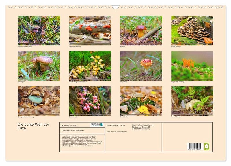 QUALITÄT - Hochwertiger Fotokalender mit 12 wunderschönen Motiven auf lichtbeständigem Bilderdruckpapier, robuste Spiralbindung mit Aufhängebügel.NACHHALTIG - deutliche Abfallreduzierung durch bedarfsgerechte Einzelstückfertigung, umweltfreundliches FSC-zertifiziertes Papier, Produktion in Deutschland, klimabewusste Logistik.PERFEKTES GESCHENK - Kalender für Freunde und Familie, für Kinder und Erwachsene, jung und alt, zu Weihnachten, Geburtstag oder zwischendurch.VIELFALT - Bildkalender in verschiedenen Formaten, z.B. DIN A5, DIN A4, DIN A3 sowie DIN A2. Ob Naturmotiv, Gemälde oder Fotos, ideal für ein persönliches Wohlfühlambiente.Aufnahmen von Waldpilzen von Autor(in): Thomas Polske