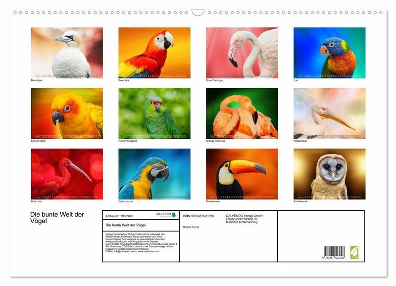 QUALITÄT - Hochwertiger Fotokalender mit 12 wunderschönen Motiven auf lichtbeständigem Bilderdruckpapier, robuste Spiralbindung mit Aufhängebügel.NACHHALTIG - deutliche Abfallreduzierung durch bedarfsgerechte Einzelstückfertigung, umweltfreundliches FSC-zertifiziertes Papier, Produktion in Deutschland, klimabewusste Logistik.PERFEKTES GESCHENK - Kalender für Freunde und Familie, für Kinder und Erwachsene, jung und alt, zu Weihnachten, Geburtstag oder zwischendurch.VIELFALT - Bildkalender in verschiedenen Formaten, z.B. DIN A5, DIN A4, DIN A3 sowie DIN A2. Ob Naturmotiv, Gemälde oder Fotos, ideal für ein persönliches Wohlfühlambiente.Bunte und farbenfrohe Vögel ein ganzes Jahr lang erleben von Autor(in): Martina Fornal