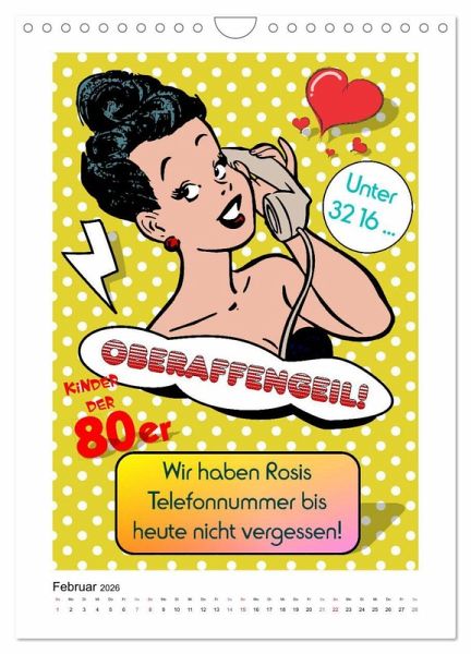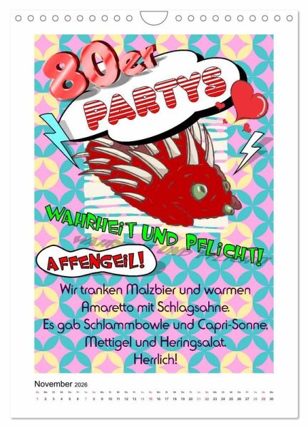 QUALITÄT - Hochwertiger Fotokalender mit 12 wunderschönen Motiven auf lichtbeständigem Bilderdruckpapier, robuste Spiralbindung mit Aufhängebügel.NACHHALTIG - deutliche Abfallreduzierung durch bedarfsgerechte Einzelstückfertigung, umweltfreundliches FSC-zertifiziertes Papier, Produktion in Deutschland, klimabewusste Logistik.PERFEKTES GESCHENK - Kalender für Freunde und Familie, für Kinder und Erwachsene, jung und alt, zu Weihnachten, Geburtstag oder zwischendurch.VIELFALT - Bildkalender in verschiedenen Formaten, z.B. DIN A5, DIN A4, DIN A3 sowie DIN A2. Ob Naturmotiv, Gemälde oder Fotos, ideal für ein persönliches Wohlfühlambiente.Eine lustige Reise durch die verrückten und geliebten 80er Jahre! von Autor(in): Rose Hurley