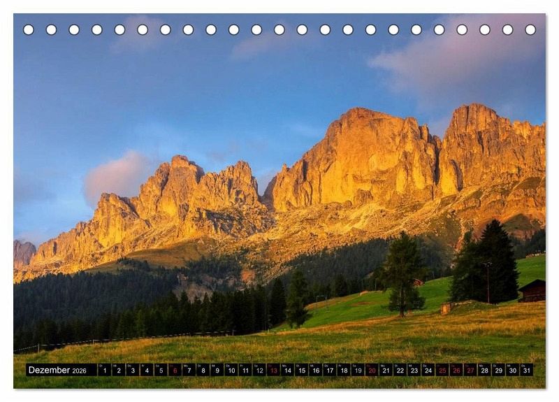 Die Dolomiten, italienische Königin der Alpen, sind zweifellos eine der beeindruckendsten Gebirgszüge in den Alpen. Dieser Bildkalender zeigt eine Auswahl der schönsten Berge von den Sextner Dolomiten im Osten bis zur wilden Schönheit der Brenta-Gruppe im Westen. Erleben Sie großartige Panoramablicke und schroffe Gipfel - u.a. die Drei Zinnen, den Rosengarten, die Sellagruppe und die Marmolata.