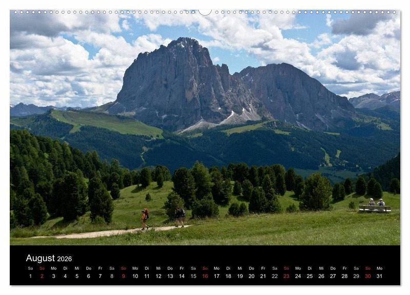 In diesem Kalender finden Sie Motive aus den Gebieten Rosengarten, Langkofel, Sellagruppe, Geislergruppe, Puezgruppe und Marmolada.