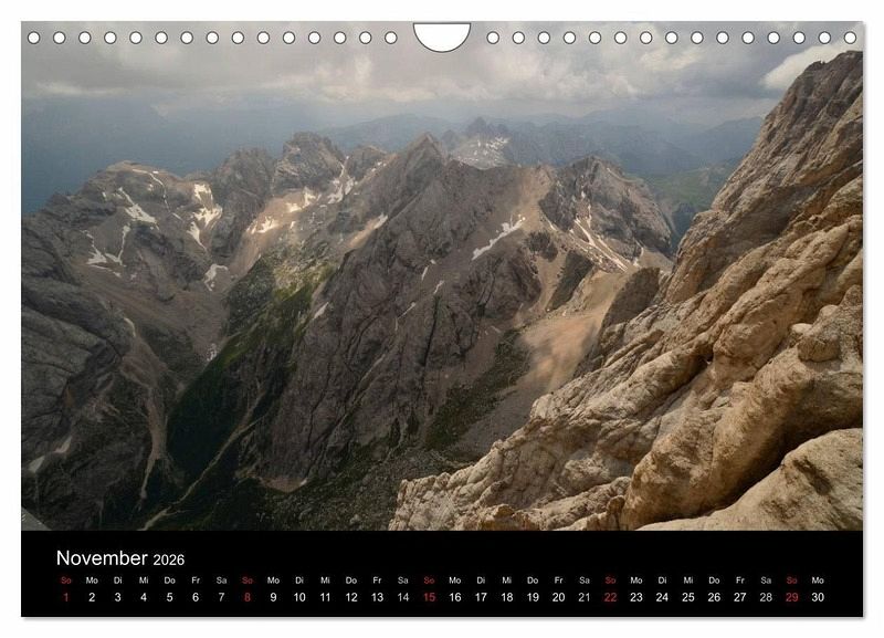 In diesem Kalender finden Sie Motive aus den Gebieten Rosengarten, Langkofel, Sellagruppe, Geislergruppe, Puezgruppe und Marmolada.
