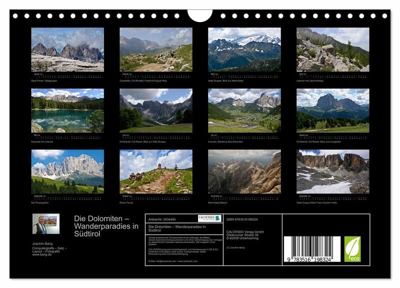 QUALITÄT - Hochwertiger Fotokalender mit 12 wunderschönen Motiven auf lichtbeständigem Bilderdruckpapier, robuste Spiralbindung mit Aufhängebügel.NACHHALTIG - deutliche Abfallreduzierung durch bedarfsgerechte Einzelstückfertigung, umweltfreundliches FSC-zertifiziertes Papier, Produktion in Deutschland, klimabewusste Logistik.PERFEKTES GESCHENK - Kalender für Freunde und Familie, für Kinder und Erwachsene, jung und alt, zu Weihnachten, Geburtstag oder zwischendurch.VIELFALT - Bildkalender in verschiedenen Formaten, z.B. DIN A5, DIN A4, DIN A3 sowie DIN A2. Ob Naturmotiv, Gemälde oder Fotos, ideal für ein persönliches Wohlfühlambiente.Die Dolomiten - einzigartig schöne Bergwelt, erlebnisreich und entspannend. von Autor(in): Joachim Barig
