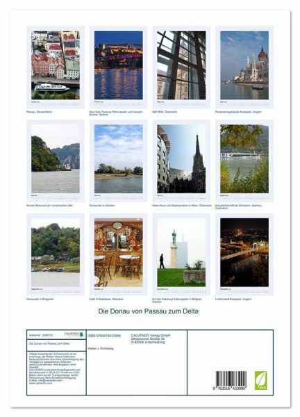 Die Donau ist ein europäischer Strom, der die unterschiedlichsten Länder - und Kulturen - durchfließt. Die Bilder dieses Kalenders zeigen auf beeindruckende Weise die Vielfalt der Städte, der Bauwerke und der Natur an diesem Fluss. Die Fotos entstanden zwischen Passau und dem rumänischen Delta.