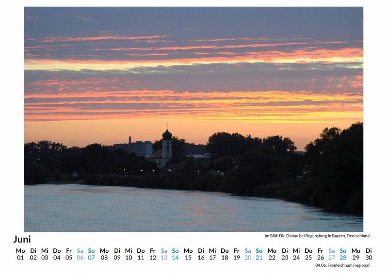 Erleben Sie die majestätische Schönheit der Donau das ganze Jahr über mit unserem exklusiven Wandkalender! Tauchen Sie Monat für Monat in atemberaubende Landschaften und historische Städte entlang des zweitlängsten Flusses Europas ein. Jedes der 12 sorgfältig ausgewählten Motive fängt die Magie dieses einzigartigen Flusses ein - von malerischen Uferlandschaften bis hin zu beeindruckenden Bauwerken. Gedruckt auf hochwertigem, lichtbeständigem Bilderdruckpapier und in Deutschland auf FSC-zertifiziertem Papier produziert, ist dieser Kalender nicht nur ein optisches Highlight, sondern auch umweltfreundlich. Perfekt für alle, die von Flussreisen träumen oder die Donau lieben. Jetzt bestellen und jeden Monat genießen! Hochwertig Erleben Sie ein Jahr voller Eleganz mit unserem Premium-Fotokalender. Jedes der 12 Motive ist auf hochwertigem, lichtbeständigem Bilderdruckpapier gedruckt, um die Lebendigkeit jedes Bildes zu bewahren. Die robuste Spiralbindung gewährleistet Langlebigkeit und einfache Handhabung. Nachhaltig Unser Engagement für die Umwelt spiegelt sich in jedem Exemplar wider. Durch die Produktion auf Abruf reduzieren wir signifikant unseren Abfall. Wir verwenden ausschließlich umweltfreundliches, FSC-zertifiziertes Papier. Stolz gefertigt in Deutschland, achten wir bei unserer Logistik auf Klimaschutz, um unseren ökologischen Fußabdruck zu minimieren. Das ideale Geschenk Dieser Kalender ist das perfekte Präsent für jeden Anlass - ob Weihnachten, Geburtstage oder einfach als liebevolle Aufmerksamkeit zwischendurch. Geeignet für Freunde, Familie, Kinder und Erwachsene gleichermaßen, bereichert er jedes Zuhause mit seiner Vielfalt und Schönheit, unabhängig vom Alter der Beschenkten.