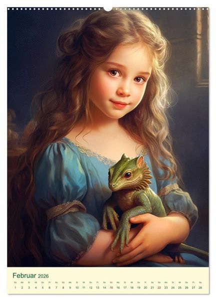 Februar: Mädchen mit einem Drachenbaby