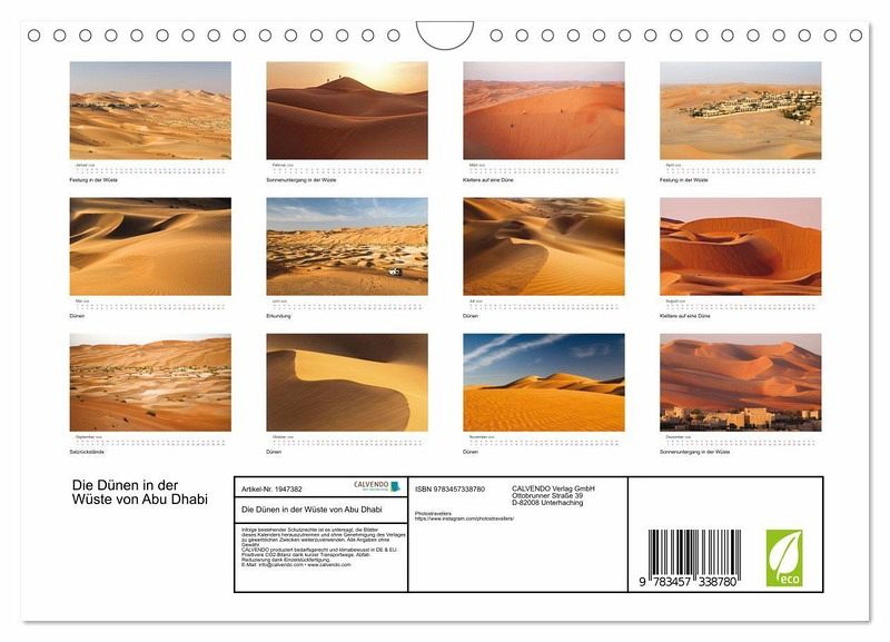 QUALITÄT - Hochwertiger Fotokalender mit 12 wunderschönen Motiven auf lichtbeständigem Bilderdruckpapier, robuste Spiralbindung mit Aufhängebügel.NACHHALTIG - deutliche Abfallreduzierung durch bedarfsgerechte Einzelstückfertigung, umweltfreundliches FSC-zertifiziertes Papier, Produktion in Deutschland, klimabewusste Logistik.PERFEKTES GESCHENK - Kalender für Freunde und Familie, für Kinder und Erwachsene, jung und alt, zu Weihnachten, Geburtstag oder zwischendurch.VIELFALT - Bildkalender in verschiedenen Formaten, z.B. DIN A5, DIN A4, DIN A3 sowie DIN A2. Ob Naturmotiv, Gemälde oder Fotos, ideal für ein persönliches Wohlfühlambiente.Die Farbe der Wüste von Autor(in): Photostravellers