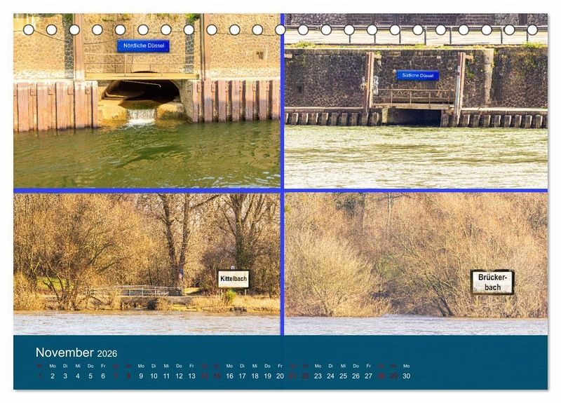 Die Düssel ist der Namensgeber für die Landeshauptstadt Düsseldorf. Nur wenige wissen, dass es mehrere Quellen und mehrere Mündungen gibt. Dieser Kalender folgt jahresgenau dem Verlauf des 40km langen Flusses von den drei Quellen bis zu den vier Mündungen.