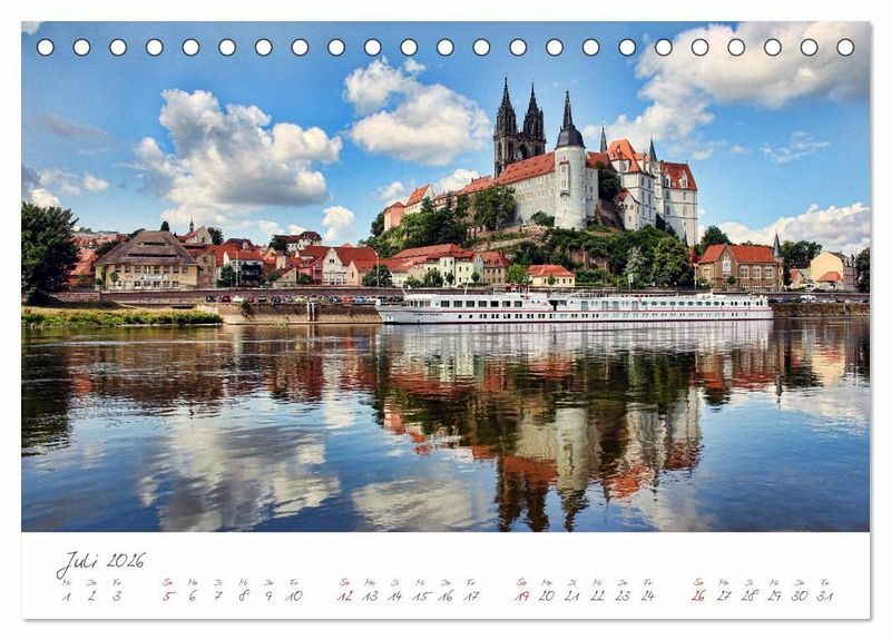 Juli: Meißen, Albrechtsburg und Dom spiegelt sich in der Elbe, Sachsen