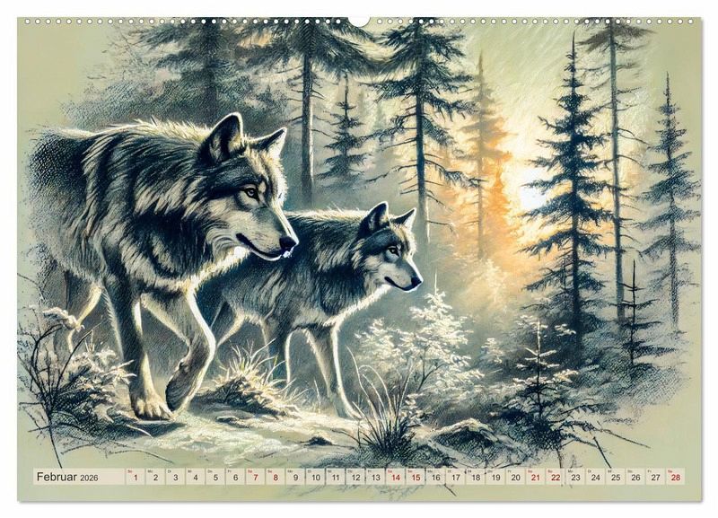Tauchen Sie ein in die Welt der Wölfe mit dem Kalender "Die Eleganz der Wölfe - Mythische Begegnungen in der Natur". Dieser einzigartige Kalender zeigt majestätische Wölfe in beeindruckenden KI-generierten Kohlezeichnungen, die sowohl ihre wilde Natur als auch ihre geheimnisvolle Eleganz widerspiegeln. Jede Seite ist ein kunstvolles Meisterwerk, das die Romantik und das Mysterium der Wölfe in atemberaubenden Landschaften einfängt - von nächtlichen Mondlichtszenen bis hin zu ruhigen Begegnungen in verschneiten Wäldern. Lassen Sie sich von der mystischen Schönheit der Wölfe durch das Jahr begleiten. Ein perfektes Geschenk für Natur- und Kunstliebhaber, das sowohl künstlerische Ästhetik als auch die Faszination für die Natur vereint.
