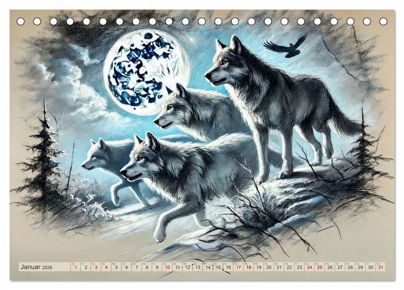 Tauchen Sie ein in die Welt der Wölfe mit dem Kalender "Die Eleganz der Wölfe - Mythische Begegnungen in der Natur". Dieser einzigartige Kalender zeigt majestätische Wölfe in beeindruckenden KI-generierten Kohlezeichnungen, die sowohl ihre wilde Natur als auch ihre geheimnisvolle Eleganz widerspiegeln. Jede Seite ist ein kunstvolles Meisterwerk, das die Romantik und das Mysterium der Wölfe in atemberaubenden Landschaften einfängt - von nächtlichen Mondlichtszenen bis hin zu ruhigen Begegnungen in verschneiten Wäldern. Lassen Sie sich von der mystischen Schönheit der Wölfe durch das Jahr begleiten. Ein perfektes Geschenk für Natur- und Kunstliebhaber, das sowohl künstlerische Ästhetik als auch die Faszination für die Natur vereint.