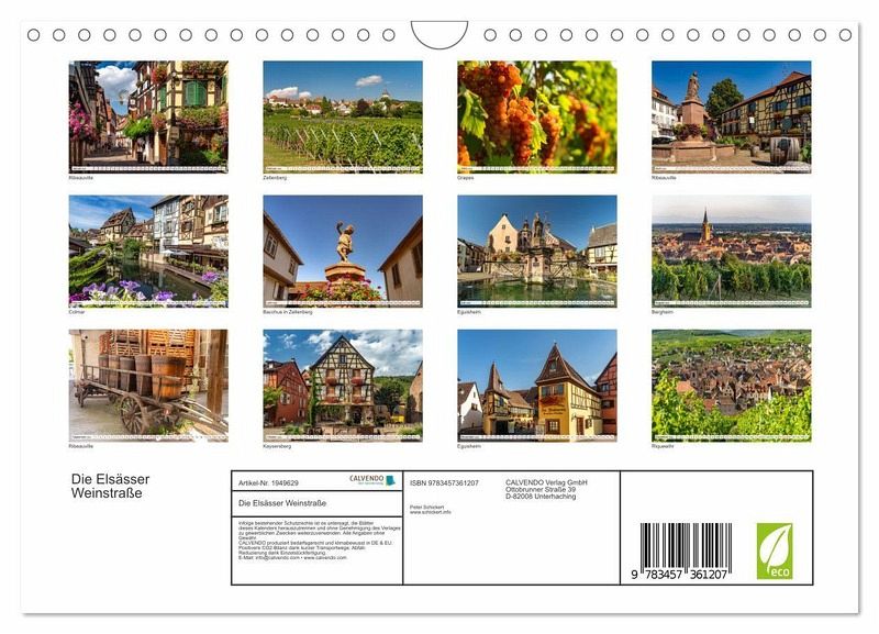 Entdecken Sie die malerische Schönheit der Elsässer Weinstraße mit diesem faszinierendem Kalender vom renommierten Reisefotografen Peter Schickert. Tauchen Sie in 12 Monaten ein in die wunderbare Welt der Weinberge, pittoresken Dörfer und traditionellen Fachwerkhäuser, die die Elsässer Weinstraße so einzigartig machen.