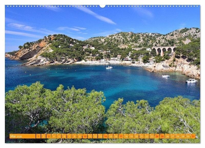 Die Bilder dieses Kalender entstanden bei einer Küstenwanderung an der Côte Bleue bei Marseille. Mal hoch über den Klippen, mal runter zu Badepausen in einer malerischen Bucht. Am Ende genießt man frische Meeresfrüchte im Hafen von Niolon, bevor es mit dem Train Bleu zurück zum Ausgangspunkt in Ensuès-la-Redonne geht.