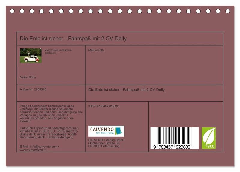 QUALITÄT - Hochwertiger Fotokalender mit 12 wunderschönen Motiven auf lichtbeständigem Bilderdruckpapier, robuste Spiralbindung.NACHHALTIG - deutliche Abfallreduzierung durch bedarfsgerechte Einzelstückfertigung, umweltfreundliches FSC-zertifiziertes Papier, Produktion in Deutschland, klimabewusste Logistik.PERFEKTES GESCHENK - Kalender für Freunde und Familie, für Kinder und Erwachsene, jung und alt, zu Weihnachten, Geburtstag oder zwischendurch.VIELFALT - Bildkalender in verschiedenen Formaten, z.B. DIN A5, DIN A4, DIN A3 sowie DIN A2. Ob Naturmotiv, Gemälde oder Fotos, ideal für ein persönliches Wohlfühlambiente.Outdoor unterwegs mit Kultauto Ente von Autor(in): Meike Bölts