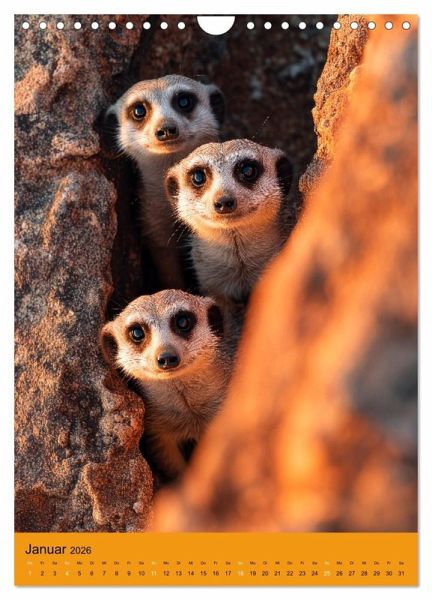 Verspielte Erdmännchen sorgen jeden Monat für gute Laune. Dieser niedliche Tierkalender zeigt die süße Erdmännchen-Familie in einzigartigen Bildern - mal neugierig, mal kuschelnd, mal frech. Die mit KI-generierten Aufnahmen machen den Kalender zu einem liebevollen Geschenk für Kinder, Familien und alle, die niedliche Tiere lieben. Ob als fröhlicher Familienkalender in der Küche, als Kindergeschenk voller tierischer Momente oder als Geschenkkalender für Fans von Erdmännchen-Figuren: Jede Seite bringt Freude und ein Lächeln in den Alltag. Der Erdmännchen Kalender ist nicht nur dekorativ, sondern auch praktisch und ein ideales Geschenk für Tierfreunde. Hol dir tierische Niedlichkeit nach Hause und entdecke die charmante Erdmännchen-Familie in 12 süßen Motiven.