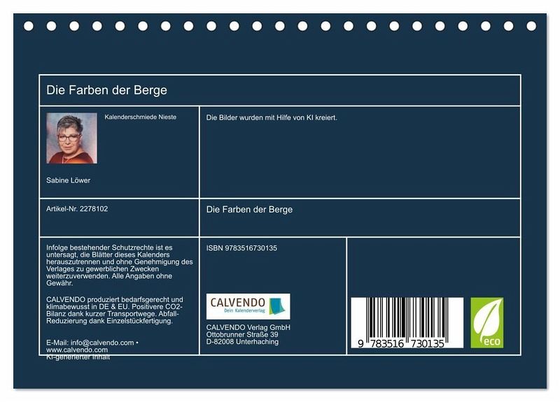 QUALITÄT - Hochwertiger Fotokalender mit 12 wunderschönen Motiven auf lichtbeständigem Bilderdruckpapier, robuste Spiralbindung.NACHHALTIG - deutliche Abfallreduzierung durch bedarfsgerechte Einzelstückfertigung, umweltfreundliches FSC-zertifiziertes Papier, Produktion in Deutschland, klimabewusste Logistik.PERFEKTES GESCHENK - Kalender für Freunde und Familie, für Kinder und Erwachsene, jung und alt, zu Weihnachten, Geburtstag oder zwischendurch.VIELFALT - Bildkalender in verschiedenen Formaten, z.B. DIN A5, DIN A4, DIN A3 sowie DIN A2. Ob Naturmotiv, Gemälde oder Fotos, ideal für ein persönliches Wohlfühlambiente.Leuchtend bunte Bergansichten von Autor(in): Sabine Löwer