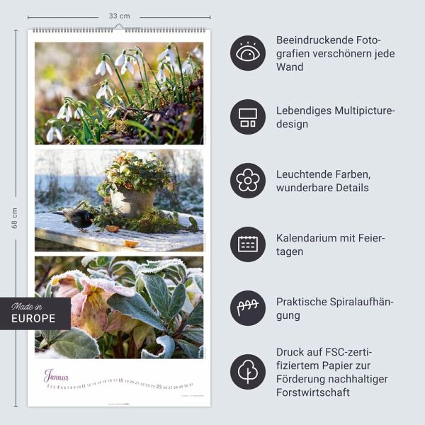 - Jahres-Wandkalender voll bunter Vielfalt: eine Hommage an den Farben-Reichtum der Natur - Einblicke in prachtvolle Garten-Oasen im Wandel der Jahreszeiten- Monatlich ein neuer Farbakzent an Ihrer Wand: Kalender XL mit 12 stimmungsvollen Foto-Kompositionen, die das Herz aller Gartenfreunde höherschlagen lassen - Immer das passende Geschenk für Hobbygärtner und Gartenbesitzer: hochwertiger Fotokalender im vertikalen Blickfang-Format 33 x 68 cm- Jahr für Jahr inspirierende Bilder: die Naturkalender von Weingarten im Athesia Kalenderverlag