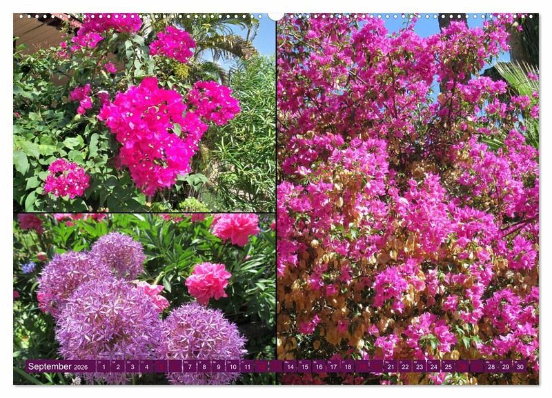 Juni: Rot: Tropische Blüten, Herbstfärbung, Gebäude am Strand